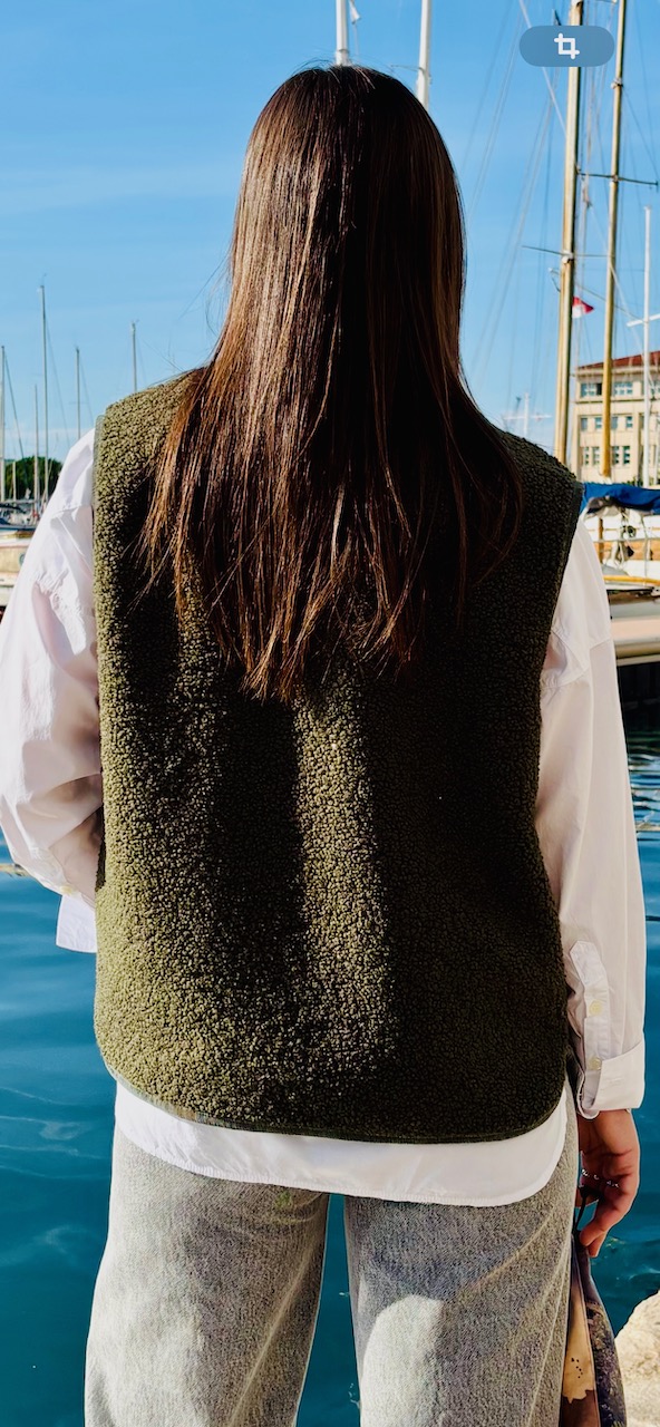 Gilet sans manches bouclettes Kaki STUDIO PARISIEN