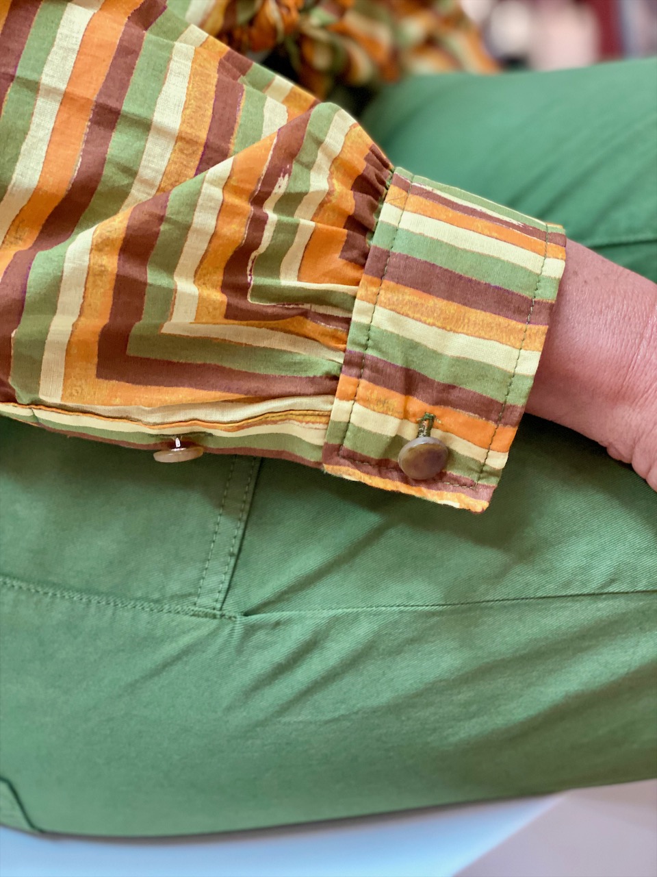 BABAKAR est un pantalon taille haute, avec un élastique à la taille. Deux liens permettent de le maintenir à la hauteur souhaitée. Sa coupe est large et sa jambe est droite. Il possède deux poches plaquées sur le devant.