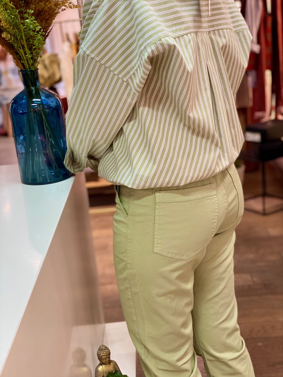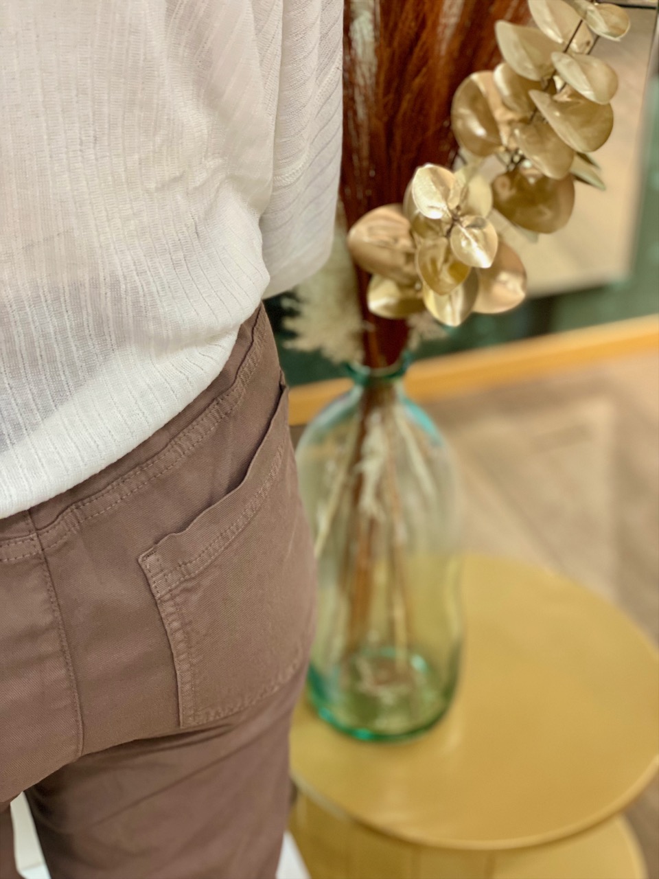 Nous ne présentons plus notre pantalon JIMMY. Véritable modèle iconique de la marque HOD PARIS. Jimmy est entièrement élastique à la taille, ce qui le rend très confortable. Sa jambe est droite et large. Il possède deux poches plaquées « à l’italienne ».