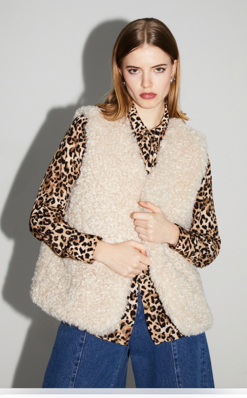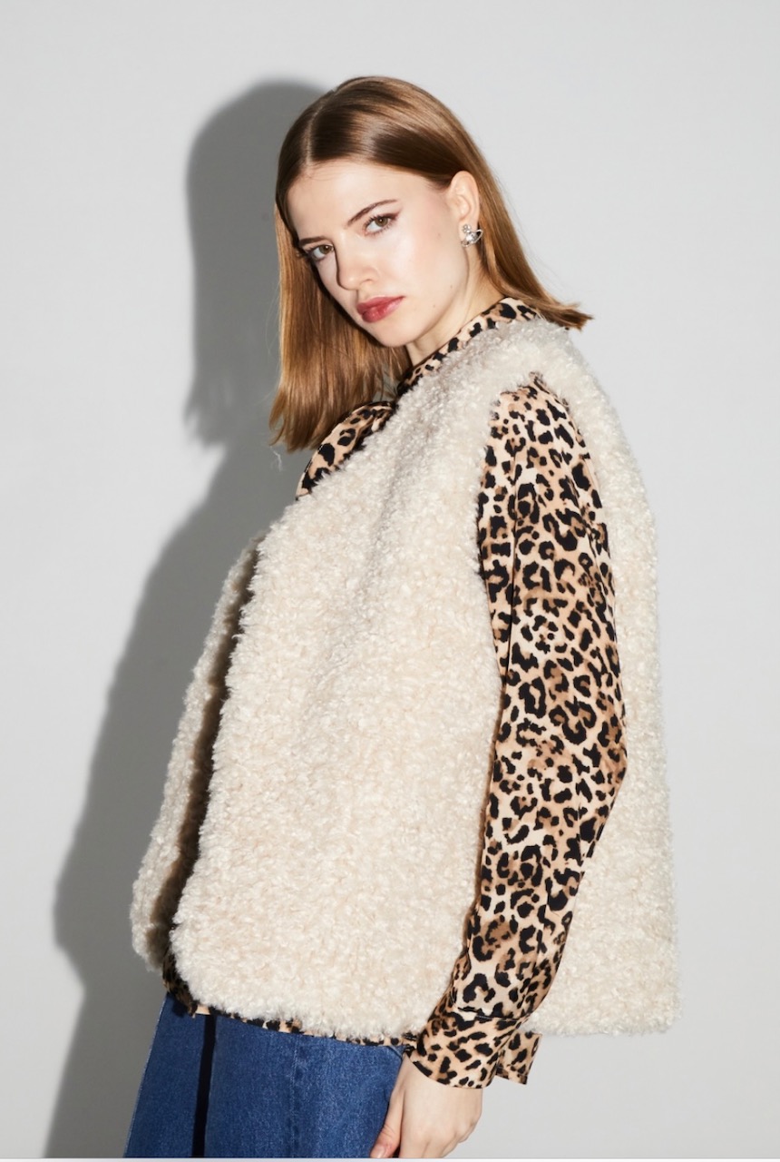 Veste sans manches Tess teddy naturel fabriquée en Italie